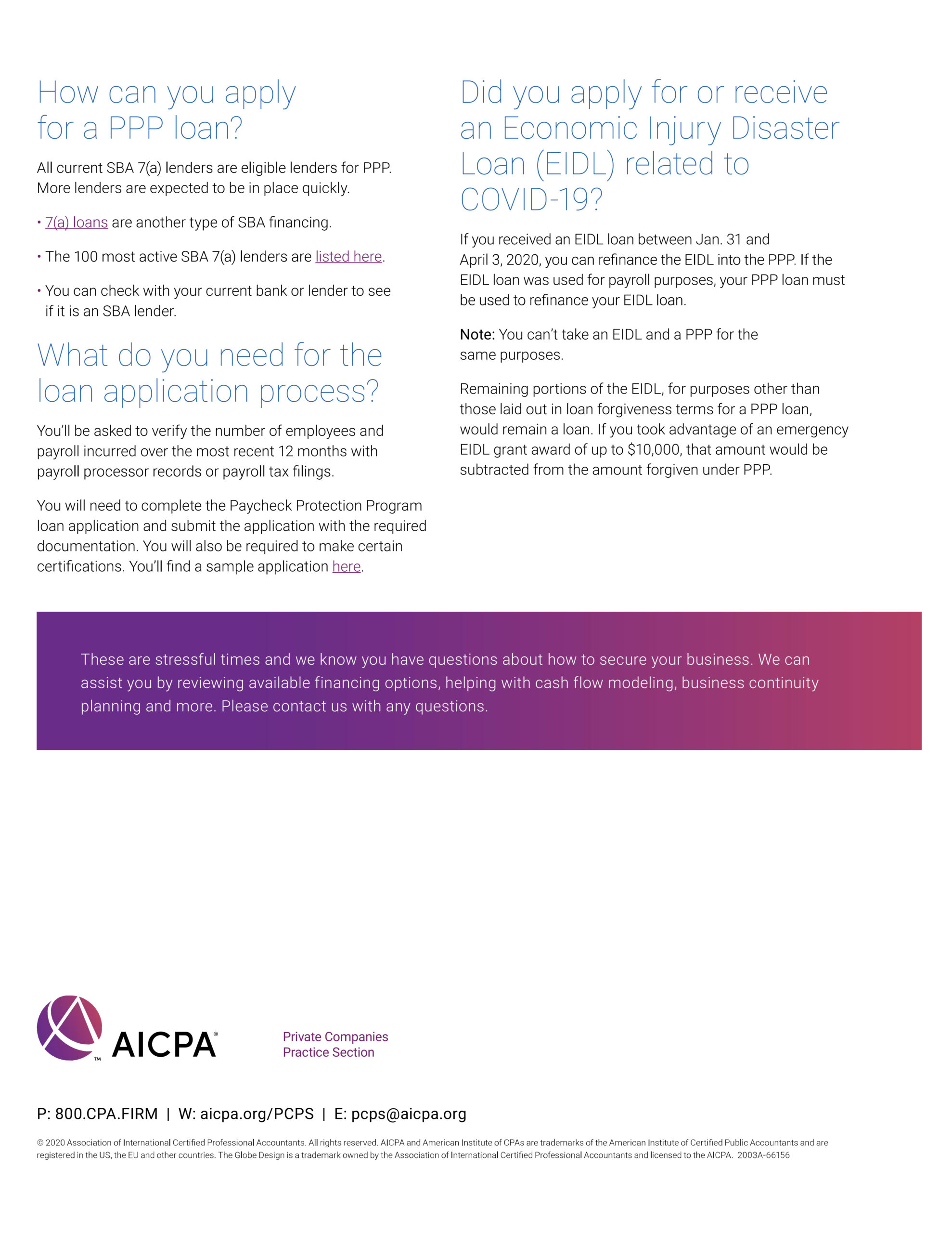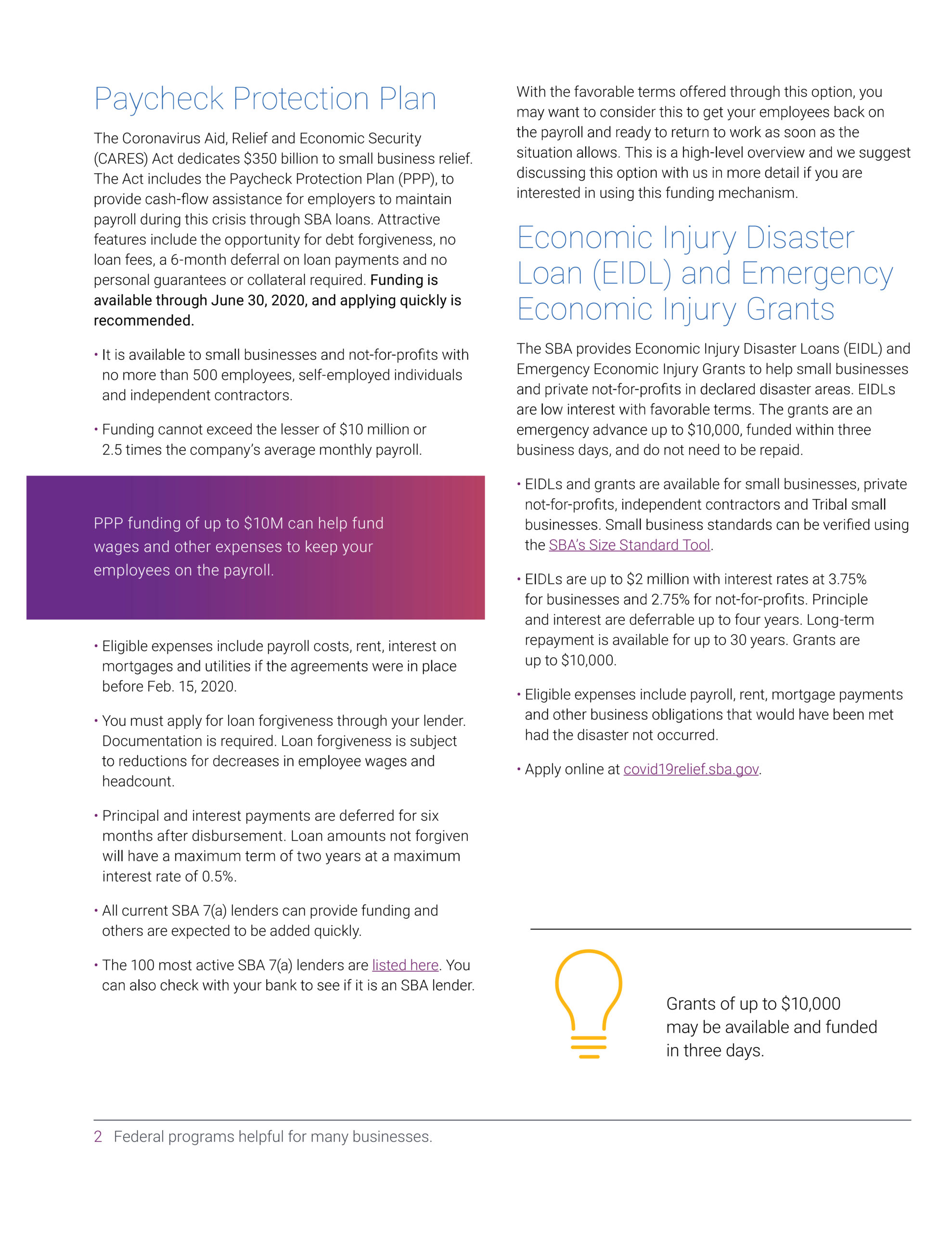 Additional funding for the Paycheck Protection Program has become available. Applications will be accepted as early as Monday, April 27th. We recommend working with your lenders to apply now. Please contact us if you need help finding lenders. Visit our WHH COVID-19 Resource Center for the latest news and up-to-date information.